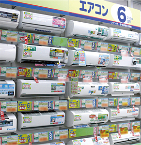 各店舗で共通しているのは、省エネモデルが売れていること。店舗側でも、古いモデルと省エネモデルの電気代を比較する展示などで買い替えを促している。