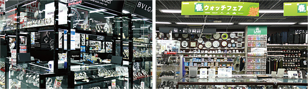 駅前の店舗は交通の利便性が高いので、さまざまな層のお客様が来店するが、通りすがりや暇つぶしに店舗を訪れるお客様も多い。すぐには買う気がなくても、ショーケースの腕時計を眺めてあれこれと品定めをするのが楽しみ、という男性は多い。こうした層を吸引するために、駅前店舗の多くは1階などの入口となるフロアに腕時計コーナーを設置している。なかには見ているうちに購買意欲を刺激されて、その場やあとで購入する人も多い。その意味で、腕時計は家電量販店にとって新たなお客様を獲得する恰好の商材になっている。