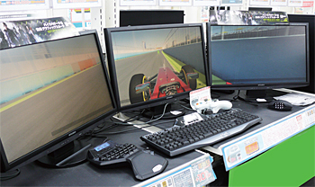 ゲームユーザーの来店が多いドスパラ札幌店では、3枚のディスプレイを使ってゲームを実演。「マルチディスプレイ環境で常に最新のゲームを動かしているので、お客様が立ち止まってくださる」と、鈴木基希店長は自信をみせる。これがオリジナルパソコン「GALLERIA(ガレリア)」のアピールにつながり、「高性能なのに低価格ということで、販売は好調」という。
