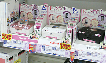 主婦の来店が多いコジマNEWイオン西岡店では、フォトプリンタを勧めている。母親が、運動会などのイベントで子どもや子どもの友人を撮影して、そのお母さんに写真を渡すなど、ちょっとしたコミュニケーションにフォトプリンタが活躍する。「省スペースで手軽に印刷できることを訴えて購入につなげている」(相澤店長)という。