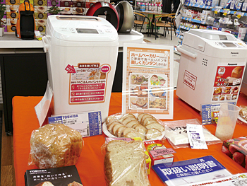 広島県広島市の繁華街、中区紙屋町にあるエディオン広島本店は、多くの広島市民から支持されている地域No.1店舗。エディオンの前身であるデオデオの本拠地とあって、圧倒的な知名度を誇る。そのエディオン広島本店が力を入れているのが、デモンストレーションの充実だ。例えばホームベーカリーのコーナーでは、店内でつくったパンを試食できる。炊飯器のコーナーでも、炊いたご飯を試食できて、しかも各メーカーのモデルの食べ比べもできる。お客様に実際に体験(試食)してもらい、納得のうえで製品を購入してもらうというのが最大の目的だ。