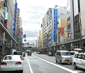 大阪では梅田駅前のヨドバシカメラマルチメディア梅田(左)となんばのヤマダ電機LABI1なんばの2店舗が突出して売り上げが大きい まず、2001年5月に地下鉄なんば駅前に、ビックカメラがなんば店をオープン。なんば駅を利用してでんでんタウンを訪れていたパソコンユーザーの多くがビックカメラでデジタル機器を購入するようになった。さらに同じ年の11月には、ヨドバシカメラがJR大阪(梅田)駅北口前に売り場面積約2万m2という超大型のマルチメディア梅田をオープン。JRや地下鉄、阪急電鉄や阪神電車のターミナル駅での出店とあって、たちまちのうちに市民に大阪駅前で家電を購入する習慣を根づかせた。さらに2006年には、ヤマダ電機が大型複合施設のなんばパークスと隣接する場所に約2万m2の売り場面積をもつLABI1なんばを出店。店舗はでんでんタウンの目と鼻の先だ。ビックカメラ、ヨドバシカメラ、ヤマダ電機の大手家電量販店による近隣地域への出店で、人の流れが変わったことは間違いない。