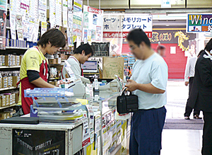 【トップが語る人気の理由】 1999年の設立以来、移転を繰り返したが、そのすべてがでんでんタウンのなか。鈴木代表取締役は、「パソコンファンの来訪が減り、サブカルチャーの要素が入るなど、でんでんタウンは大きく様変わりしたが、ここにはここのよさがある」と述べる。大型店舗の出店によって、どの店でも取り扱っているパソコン関連機器などに関しては厳しい商売を強いられているが、「逆に当店でしか購入しないというコアなファンが増えた」という。なかには、他店で購入して故障したパソコンを持ち込んでくるお客様もいる。パーツやパソコンに関して、深い知識をもつスタッフを頼って来店しているのだ。