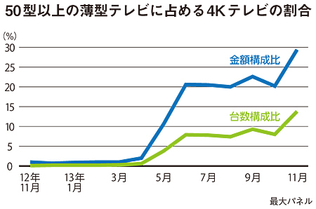 <BCNアナリストの店頭市況>4Kテレビ、50型以上では販売金額の3割水準に
