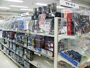 「パソコンパーツの品揃えに関しては、どの店舗にも負けない」 パーツの充実は、主力商品のカスタムメードパソコンの販売につながっている。「例えば、マザーボードを豊富に揃えていることで、お客様からは『納得のいく性能を搭載できる』と評価をいただいている」という。とくに、