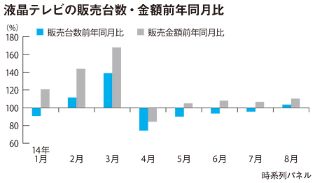 このところ先行きへの不透明感が増している経済情勢を背景にしながらも、4月以降の反動減を乗り越え、前年並みの水準に戻してきた意味は大きい。長く続いたエコポイントと地デジ化バブルの後遺症から脱し、4Kテレビなどをきっかけにしながら、テレビ市場は新たな局面を迎えつつある。(道越一郎)
