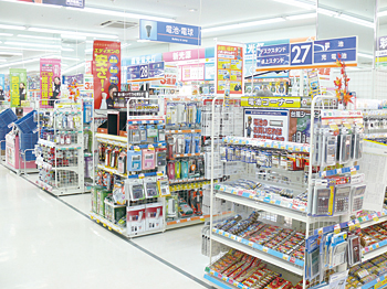 お客様の要望で多いのが、電卓や電源タップなど。1300m2程度の売り場面積のうち、4分の1程度を割いている。また、
