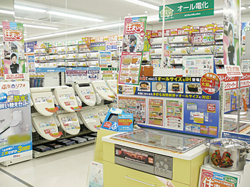 リフォーム業者に問い合わせなくても、当店で対応できる お客様の声を取り扱う商品に反映したり、コミュニケーションによって悩みを聞き出して解決したりするのが、エディオン横浜店流。坂本店長は、「気軽にご来店いただき、お目当ての商品が購入できる街の金物屋のような存在になる」と、地域密着型店舗のあり方を語る。