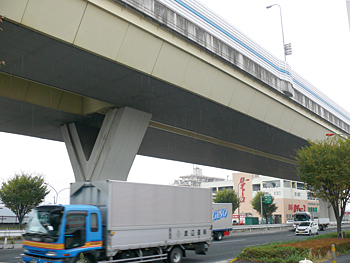 コジマ×ビックカメラ浦和店はクルマの交通量が多く、上に首都高速埼玉大宮線が通る新大宮バイパス沿いに出店している