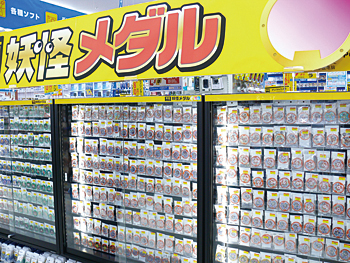 アミューズメント施設などにあるゲーム機で楽しめる妖怪ウォッチの妖怪メダルで「買い取りと販売ともに順調」と、米山店長は満足げだ。コジマ×ビックカメラ横須賀店の網代店長は、「インショップができる前と比べて、お子様の来店が増えただけでなく、ときには会社員の方が平日の会社帰りに来店してくださるようになった」とのことで、親が子どものために妖怪メダルを購入しているようだ。
