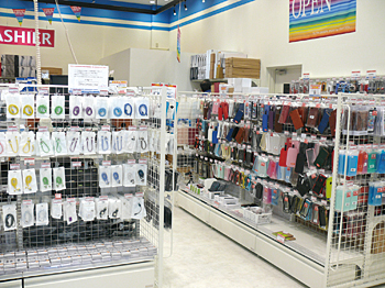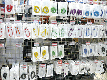 スマートフォン用のUSBケーブルで、「さまざまなカラーがあって、おしゃれなことが気に入って購入する方が多い」と、中角店長は手応えを感じている。「なかにはスマートフォン用USBケーブルを知らないお客様もおられるので、これがあればパソコンで充電できるといったメリットを説明している」ともいう。スマートフォン用USBケーブルに関しては、ファミリーだけでなく、学生や高齢者など幅広い層が購入する。ドスパライオンレイクタウンmori店が開拓しようとしている新規顧客層を着実に獲得しているわけだ。