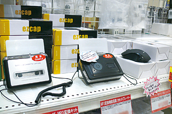 デジタル雑貨ブランドの上海問屋 来店者がデジタル雑貨に興味をもつように工夫しているのが、商品の展示方法だ。各コーナーには箱から出したそれぞれのアイテムが置いてあって、「実際に手に取って試していただけるようにしている」(中角店長)。しかも、