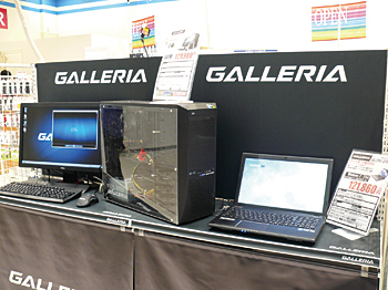 自社ブランドのパソコン「ガレリア」も展示している オープンセールでは、乾電池やマイクロSDカードなどが爆発的に売れたという。上海問屋のアイテムをメインに売り場づくりに取り組んでいるのは、「まずは多くのお客様に『ドスパラ』という店があることを知っていただくため」と、中角店長はいう。知名度が高まった段階で、ドスパライオンレイクタウンmori店が次に進むのがパソコンの販売だ。中角店長は、「ユニークな雑貨屋でさまざまなパソコンを購入できるということが浸透すれば、当社にとって新しいビジネススタイルを構築できるのではないか」と捉えている。