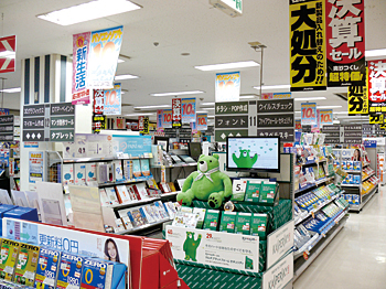 他店に比べて群を抜く品揃えがPCソフトだ。多くの店舗がソフトコーナーを縮小したり、ソフトコーナーをなくしたりするなかにあって、500m2以上の広さがある1フロアを最大限に使って「できるだけ多くのソフトを置いている」という。PCのリプレースを目的に来店した顧客に対して、接客でPCの用途を聞き出してソフトの購入につなげるためだ。例えば、デジタルカメラで撮影した画像を保存し、印刷して知人に配っているということをお客様から聞き出したら、画像編集ソフトを提案している。「スマートフォンを最大限に生かすためにアプリが必要であることと同様、PCソフトを使えば、PCの便利さを改めて理解してもらえる。そのことをお客様に訴えている」そうだ。