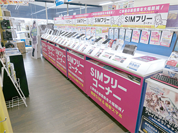 パソコン工房ではSIMフリーコーナーの充実に力を入れている(写真は富山店)