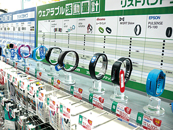 クリップタイプが歩数計の進化形といわれているように、ウェアラブル端末の由来は、「お客様のメジャーな用途を踏まえると、健康器具や理美容品から派生したジャンル」と小野氏はいう。「黒物」と呼ばれるこれまでのデジタル機器とは異なって、「新しいジャンルとして浸透することに期待したい」との考えを示す。ビックカメラ渋谷東口店別館では、ウェアラブル端末をなじみ深い商品としてアピールしていく。