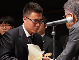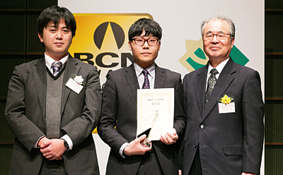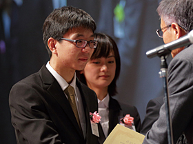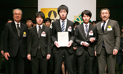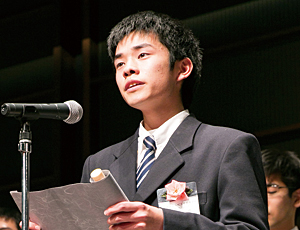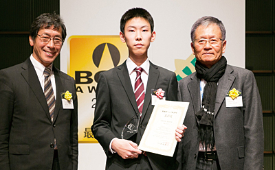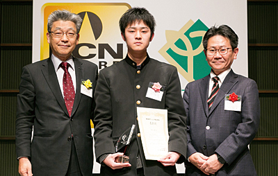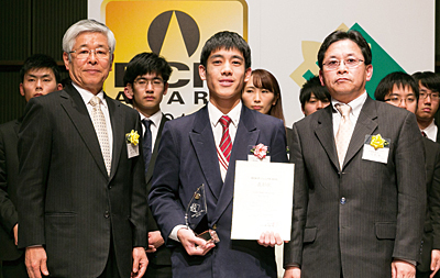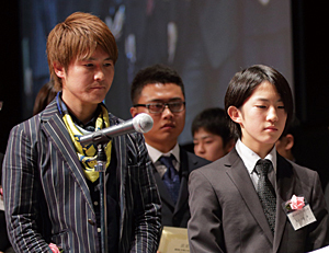 受賞者挨拶に立った山梨県立谷村工業高校の山口勝士さん。今回の受賞に感謝の意を述べ、「世のため、人のためになる仕事ができるように精進したい」と今後のさらなる活躍を約束した