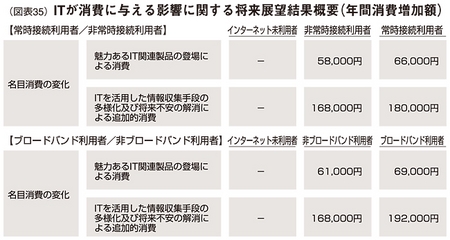なお、魅力あるIT関連製品の登場はインターネット未利用者の消費行動にも影響するものと考えられるが、今回はインターネット利用者を対象としたアンケート調査の結果をもとに分析を行っていることから、インターネット未利用者については調査対象外とし、表中では「-」と表示した。