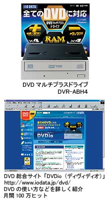 他社に先駆けて記録型DVDドライブを市場投入してきた、アイ・オー・データ機器。この選択が、ユーザーのニーズと合致した。今年は、DVD±R/RW、DVD-RAMとすべてのフォーマットに対応したDVDマルチプラスドライブDVR-ABH4(内蔵)とDVR-UEH4(外付け USB2.0、IEEE1394)を発売する。