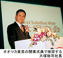 10月28日、上海で開催されたオオツカ貿易の営業開始にともなう式典には、日系企業の幹部を中心に約100人が集まった。式典の席上、大塚商会の大塚社長は「中国で日本と同様の高品質なサービスを提供できる体制をつくった」と胸を張った。