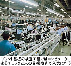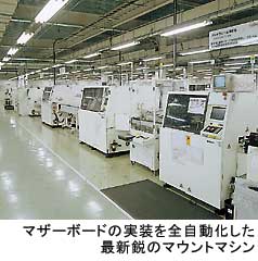 「台湾や中国では、約3%程度の微小チップはまだ自動実装できていない。ピンセットを使って手作業で取り付けるのが普通」というなかで、全自動のプリント実装マシンだけでも77台を揃えた。この工程1つをとっても、品質、生産スピードに格段の差が出るという。