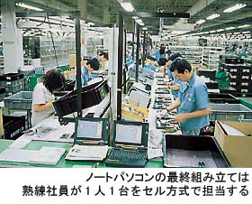 島根富士通は、島根県簸川郡に2棟約4万6000万平方メートルの工場を構える。パソコンの生産拠点として国内では屈指の規模である。1990年に操業、95年からは富士通製ノートパソコンの全生産をまかない、今年6月に累計生産台数が1000万台を超えた。しかも、このうち約500万台は過去3年間の生産分だ。