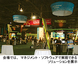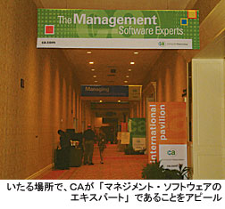 米CAが「caworld2004」で掲げたコンセプトは、「マネジメント・ソフトウェア」。これは、各企業内に導入されている同社のシステムやさまざまなソフトウェアの統合化を図ることで、オンデマンド・コンピューティングを実現していくというものだ。