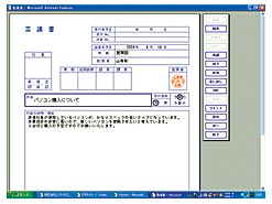 同ソフトは、ブラウザ上で企業内の伝票イメージにデータの入力ができ、画面をPDFファイルで保存・印刷できる。「日本古来の書類文化を踏襲し、企業内の書類など紙の帳票類と同じ感覚で入力・出力・決裁するように、ブラウザ上で完結できる」(岡本康広・社長室部長代理)と話す。オプションのワークフロー機能を使えば、目的の書類検索や集計なども容易になり、コスト削減につながるという。