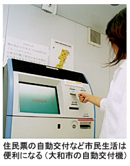 大和市の場合、約9万枚のカードを発行しており、人口あたり普及率は40.1%に達する。住民票発行など住民情報系サービスのほかにも、ICカードに地域通貨の機能も持たせた。ICカードの名称「ラブスカード」に対応して、通貨の単位を「ラブ」という。コミュニティの活性化を目的としているだけに、今年1月からは市の施設利用などで「ラブ」を“貯金”できる機能も持たせている。