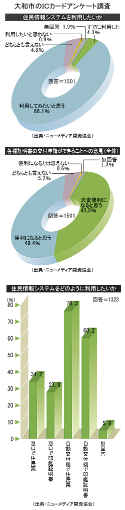 実証実験で大和市のICカードシステムを構築の代表を務めた東芝がまとめ、財団法人ニューメディア開発協会が公表している、大和市の実証実験についての市民アンケート結果を見ると、住民票などの発行が簡便になることに対し、「すでに利用した」あるいは「利用してみたい」と積極的な市民は調査対象の92.4%と、ほとんどの市民が歓迎している。