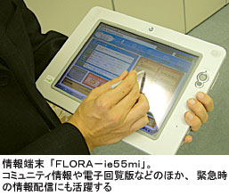 同端末で提供するサービスは、昨年4月から稼働している地域情報サイト「ライフサポートシステム(LSS)」。LSSでは、掲示板による住民や団体からのお知らせをはじめ、医療・福祉関連や学校などの情報を配信している。「地域の情報インフラとして、住民間の情報交流などコミュニティの形成や活性化を促進していく」(安藤部長代理)サイトとして位置付ける。運用は、地元のNPO(特定非営利活動)法人が担当し、日立がシステム面の支援を行っている。