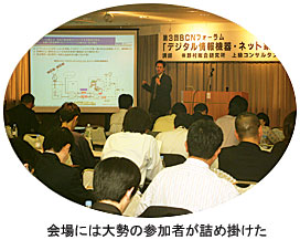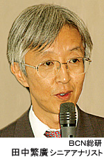 BCN(社長・奥田喜久男)は11月5日、東京・四谷の主婦会館プラザエフで「第3回BCNフォーラム」を開催した。今年7月に続き3回目となる今回は、野村総合研究所(NRI)の中村博之・情報・通信コンサルティングニ部上級コンサルタントグループマネージャーから、「デジタル情報機器・ネット家電の将来像」をテーマに、2008年の北京オリンピックを踏まえて3-5年後、さらに2010年に向けたユビキタス情報についてマクロ的な視点での分析を講演頂いた。また、BCN総研シニアアナリストの田中繁廣は、「04年PC市場の分析と今後の見通し」と題し、BCNのPOSデータと在庫、滞留在庫、属性データをカギにパソコンの購買行動について講演を行った。講演要旨は以下の通り。(田澤理恵●取材/文)