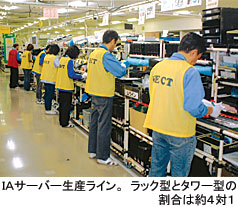 NECのパソコンを除く大型コンピュータ、サーバー事業で唯一の国内開発・生産拠点が、NECコンピュータテクノ(山梨県甲府市、那須賢治社長)だ。ここでは、スーパーコンピュータ「SX-8」やメインフレームサーバーACOSシリーズ「i-PX9000」などの大型コンピュータから、サーバー「Express5800シリーズ」まで受注生産している。1998年に導入したトヨタ生産方式(かんばん方式)によるSCM(サプライチェーンマネジメント)改革で、過剰な棚卸資産や欠品を防ぐことを実現し、資材調達と生産ラインの改革、品質保証の徹底、出荷物流の改革を実現している。