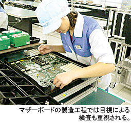 マザーボードは、自動化された機械による検査に加え、何度も目視による検査が行われる。さらに、クロックチューニングと呼ばれるCPUの効果を最大に発揮するための調整が行われる。