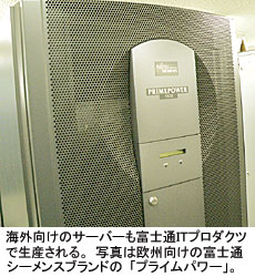 富士通ITプロダクツでは、UNIXサーバー「PRIME POWER(プライムパワー)」を主力に、メインフレームであるグローバルサーバー「GSシリーズ」、マルチサーバー「PRIME FORCE(プライムフォース)」、ストレージ「ETERNUS(エターナス)」、ネットワークサーバー「IPCOM(アイピーコム)」といった製品群を生産。そのほか、約5分の位置にある木津工場では、イメージスキャナやプリンタの生産も行っている。富士通アイソテック(福島県保原町)で生産しているIAサーバー以外のサーバー製品すべてがここで生産されており、いわば同社プラットフォーム事業の基幹生産拠点の1つということになる。