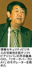 モデレーターを務めたソフトピアジャパンの丹羽義典CIOは、「情報セキュリティの確保はIT産業の中で最も期待できる。首都圏だけでなく、各地域のソフトベンダーからも優秀なソフトが開発されており、大きなビジネスチャンスを迎えている」と述べ、講演を行う4社の強みと優位性を話した。