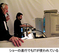 ショーの進行もITなくしては成り立たない。進行は秒単位の精度で構成されており、流される音楽や照明の演出から、モデルが舞台に登場して退場する時間まで、わずかなズレも許さないように管理されている。会場後方には専用のブースがあり、進行スタッフと音楽プロデューサー、照明アーチストたちがパソコンのモニタと目の前のショーを交互に見やりながら完璧な演出を実現しようとしている。全てのスタッフはヘッドセットを使って情報を共有しており、観客には分からないような細かな修正も随時行われている。