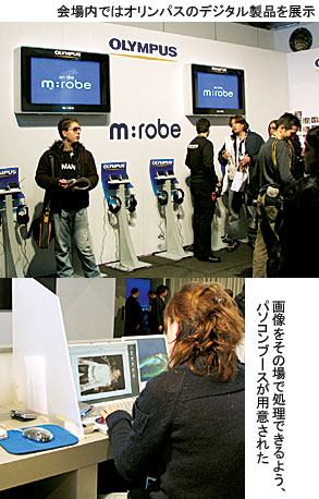 しかし、デジタルカメラがプロアマを問わず普及した現在、スポンサードの目的は同じであっても、その方法は徐々に変化してきている。会場内には最新のデジカメやMP3プレイヤーを展示し、ショーを見に来た観客への訴求を行うとともに、特に色合いや画像品質などが重視されるファッション界でデジタル機器の第一人者であることを強く訴えていた。会期中に放送される各種のテレビ番組へのコマーシャル露出も多く、この時期は「デジカメと言えばオリンパス」といった印象すら与えるほどの力の入れようだ。