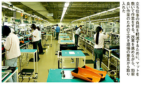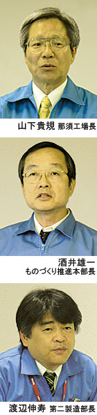 ■目標を1年前倒しでクリア 生産方式の転換により、04年度末の製造リードタイムは前年同期の61%に圧縮。工場棚卸資産の年末残高は12%圧縮し、保有日数も11%圧縮できた。当初05年までに掲げていた目標を04年度末に1年前倒しでクリアするほどで、「05年度はさらに成果を上げたい」(酒井雄一・ものづくり推進本部長)という。