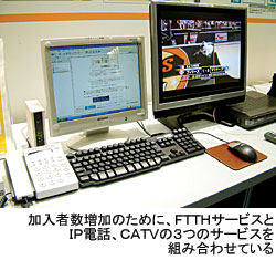 しかも、今後は高速インターネットとIP電話、CATVを組み合わせたサービスを前面に押し出す。「ブロードバンド環境が生活インフラになる『コモディティ(日用品)化』を訴えることで加入者を増やしていく」(同)方針。