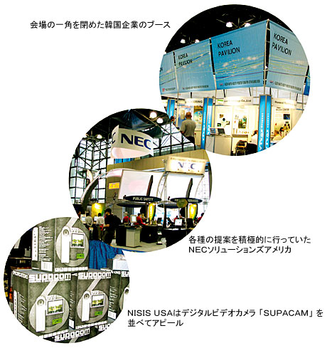 ■米軍需大手も出展 米国で基盤を築きつつあるのは日系企業だけではない。IT先進国として各国から注目を集める韓国は、会場の大きな一角を韓国系企業のみで占め、韓国IT産業の品質の高さとその充実ぶりを見せつけていた。またロシアやアイルランドの企業も出展するなど、今日のIT業界では国による制限を受けず、その品質や技術レベルの高さだけが成功の要因であることが伺える。