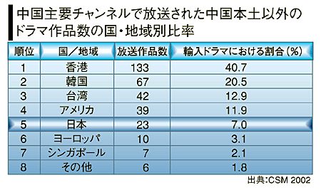 ■アニメ育成に注力する中国 中国政府は、中国国内におけるアニメーション産業の育成に力を入れており、主要都市のチャンネルにアニメーション専門のチャンネルを新設するよう働きかけている。上海では、すでにアニメーション専門チャンネルが開設された。ただし、中国国内のアニメーション産業保護の観点から、海外のアニメーションが放送される比率はそれほど多くないという。