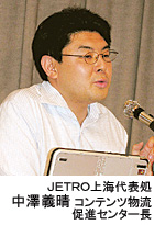 ACCS上海事務所開設記念シンポジウムでは、日本貿易振興機構(JETRO)上海代表処の中澤義晴・コンテンツ流通促進センター長が、「中国におけるエンターテイメントコンテンツ市場の今」と題した講演を行い、アニメーションを中心とした中国コンテンツビジネスの一端を紹介した。