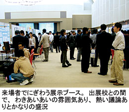 16年目を迎えた「プロコン」の会場は、鳥取県の米子コンベンションセンター。10月9-10日の2日間、予選を勝ち抜いた59校99チーム、約300人が集まった。初日は、課題と自由部門の40チームがブースを並べたデモや、プレゼンテーション審査などが行われる。