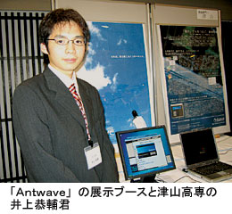 会場の中で終始人混みが絶えなかったのが、「Antwave-超次元コラボレーションブラウザ-」(自由部門最優秀賞)。津山高専の作品で、リーダーの井上恭輔君は昨年の文部科学大臣賞受賞者でもある。