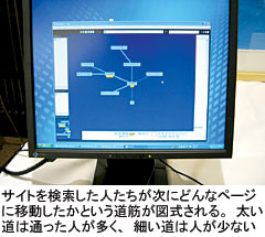 これを使えば、あるサイトのページを検索した人たちが次にどんなページに移動しているかという「道筋(経路)」を図式化して、「人だかり」のあるページを知ったり、自分が気づかない人気サイトに容易にたどり着くこともできる。