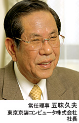 日本情報技術取引所(JIET、二上秀昭理事長)の五味久夫・常任理事が社長を務める東京京装コンピュータは、JIETの成長に伴い業績を伸ばしてきた。JIET会員の協力を得て、「大型案件」を受注できるようになったためだ。「こうした大型案件を会員同士で協力しあう中で受注することで、JIETの魅力が増す」という。五味常任理事には、会の魅力や問題点、NPO(民間非営利団体)に移行する上での課題などについて聞いた。