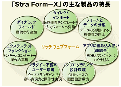 帳票システムの開発・販売大手、ウイングアークテクノロジーズ(内野弘幸社長)は、「Excel」や既存のドキュメント、帳票などをHTMLに変換し、簡単にウェブベースの入出力画面を設計できるフォームアプリケーションサーバー「StraForm-X(ストラフォームエックス、STX)」を開発し、昨年6月から出荷を開始した。STXは、HTMLやXML、J2EEなど標準技術を採用していることから、「IBM製ミドルウェアと親和性が高い」(谷口功・StraForm事業部事業部長)と、日本アイ・ビー・エム(日本IBM)と技術・営業両面で協力体制を強化した。特に、既存システムの資産を有効活用してオープンなSOA(サービス指向アーキテクチャ)におけるドキュメント、帳票、入力サービスに関してアライアンスを組んでいる。
