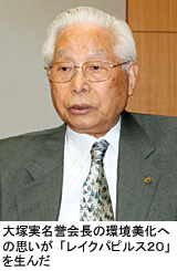大塚名誉会長はもともと琵琶湖とは縁が深い。近江舞子にホテル(琵琶レイクオーツカ)を持っているし、自然保護活動を始めてからは、湖西地区にある仰木の千枚田の保存について支援を頼まれたこともあったという。