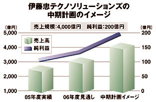 2年後の08年度には連結売上高1870億円、営業利益率3%の目標を掲げる。ハードウェアやハード保守の価格下落などが足を引っ張るなか、「他社と比べて決して高い目標ではないのだが」と苦悩ぶりを見せる。今後は自社製ERPと富士通本体の中堅中小向けERPとの連携を強め、業種に深く入り込んだ付加価値の高いシステム構築を伸ばすことで収益拡大を目指す。
